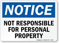 Decrease your liability and remind others to take extra precautions with their personal property. A sign is always helpful.