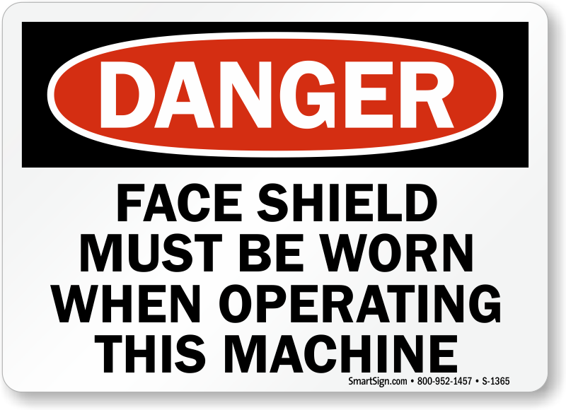 Use a "face shield must be worn when operating this machine" sign.