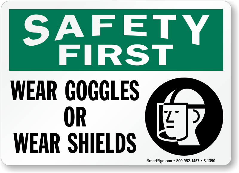 OSHA Safety First Faceshield Required Sign: Wear Goggles Or Wear Shields (with graphic)
