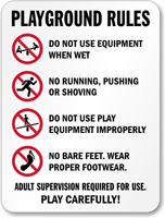 playground signs politely inform everyone of rules and regulations. Whether playground equipment is safe for a child depends on their size and motor skills.