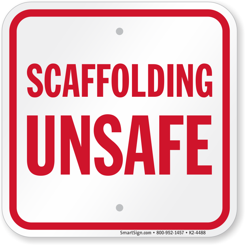 Affix this metal sign near scaffolding and ensure safety at job site.