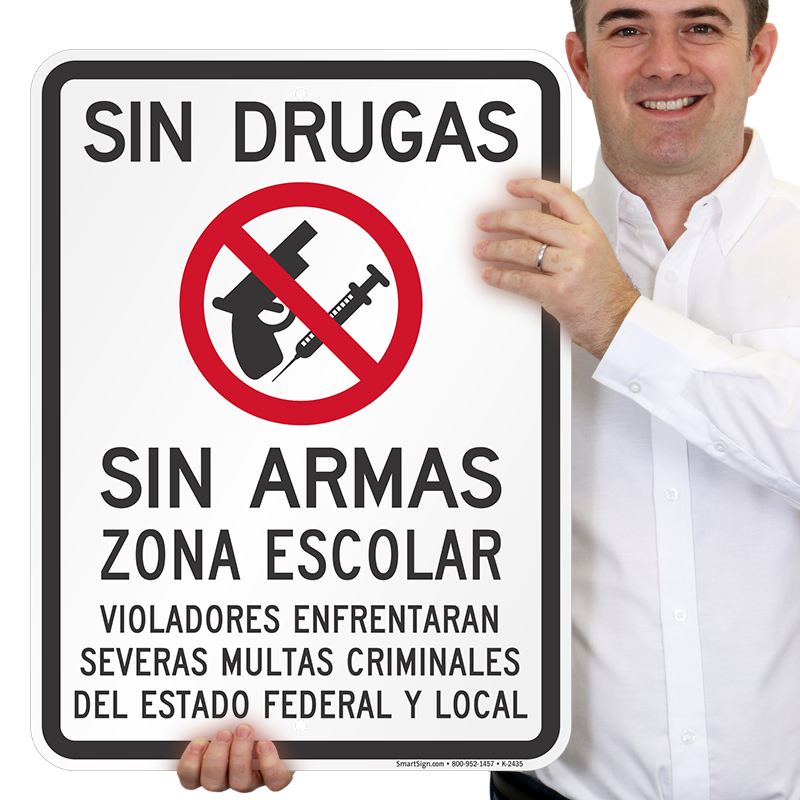 Spanish Drug Free Area Sign: Sin Drogas, Sin Armas, Zona Escolar (K-2435)