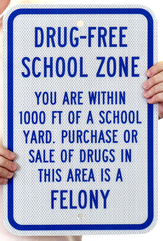 Drug Free School Sign: You Are Within 1000 Ft Of A School Yard. Purchase Or Sale of Drugs In This Area Is A Felony (K-2431)