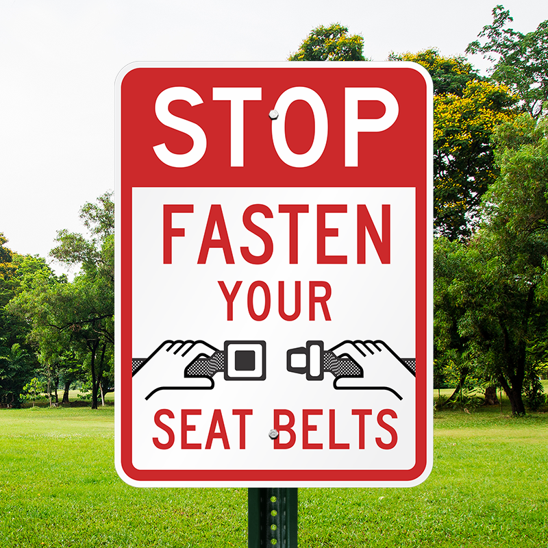 Wear Seat Belt Sign: Fasten Your Seat Belt! (seat belt symbol) Learn More...