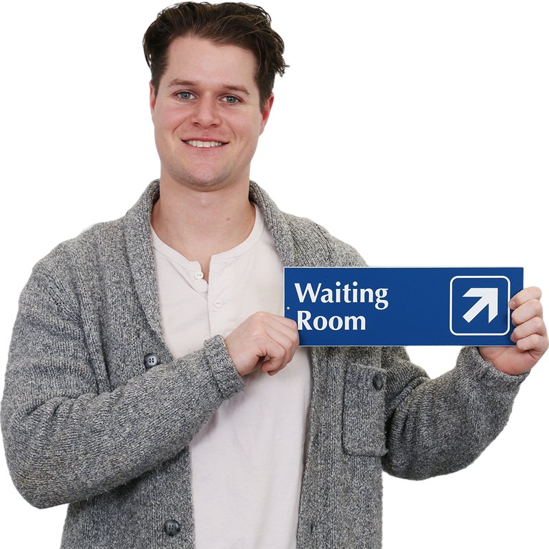 Select-a-Color Engraved Sign: Waiting Room (with Top Right Arrow) (SE-2841-TR)