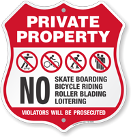 Safeguard your private property from unwanted trespassers, hunters, hikers, solicitors, skateboarders, campers, and even drones with our line of Shield Security Signs.