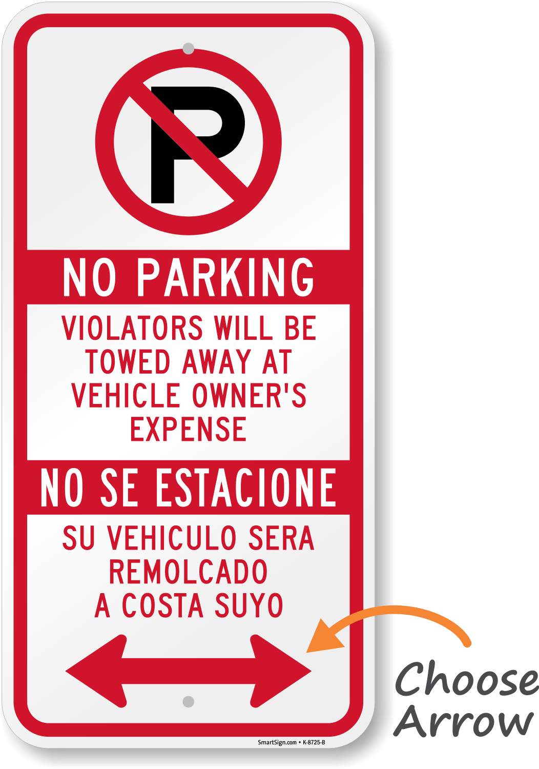Make sure that your message gets across with this bilingual, directional No Parking Sign. By saying it in Spanish and English you can warn all violators that they will be towed from your property.