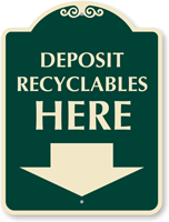 Recycle Here SignatureSign: Deposit Recyclables Here With Downward Arrow K-7851 Learn More...