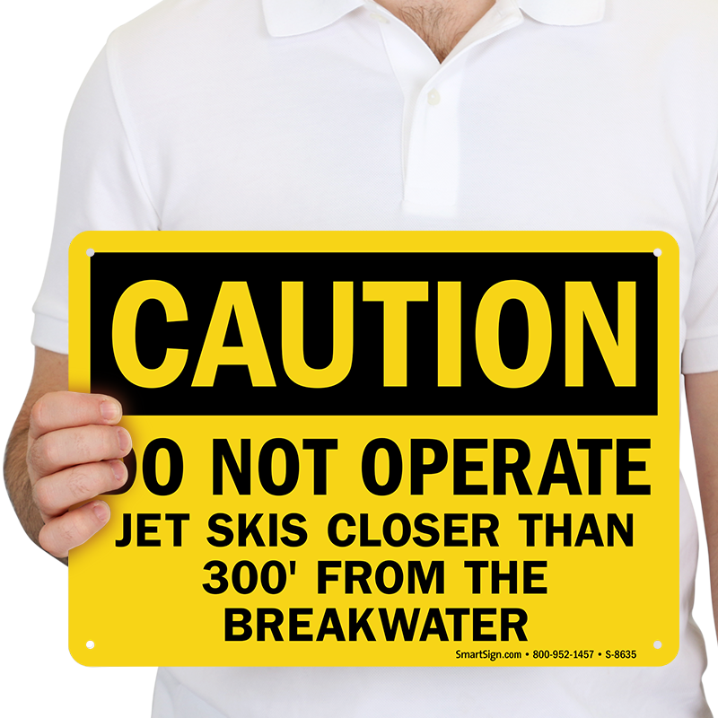 Caution Sign: Do Not Operate, Jet Skis Closer Than 300' From The Breakwater (S-8635)