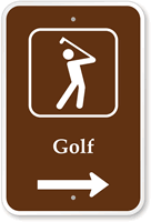 Campground Sign, Park Sign & Guide Sign: Golf (with right arrow) (with Man Playing Golf Graphic) (K-8267-R)