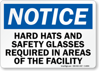 Make sure employees are always wearing appropriate equipment with a Safety Glasses Required Sign. Hard Hats Signs encourage safety.