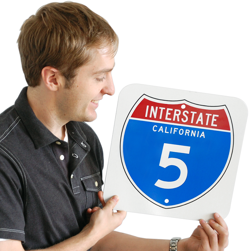 - The 12 x 12 inch sign is made with the same materials that are used in official Interstate signs.