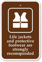 Some waters can be more rough than others. Keep swimmers safe by reminding them to wear life vests and protective footwear.