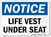 Make sure guests always know where safety equipment is located. Post a Life Vest Under Seat Sign or Label.