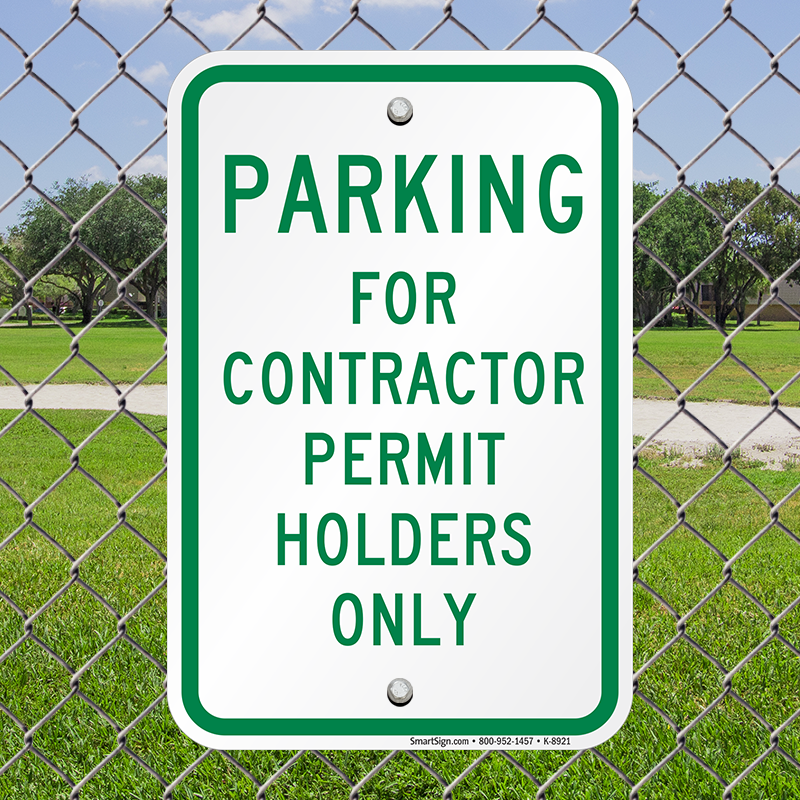 Keep parking confusion to a minimum by reserving parking for contractors with permits with this green-bordered aluminum 18x12 sign.