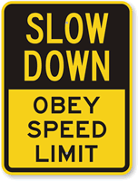 Remind people to slow down and take their time. Following the speed limit saves lives, so post signs today. Choose from our large selection of standard and customizable Slow Down signs.