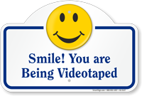 Grab attention with a smile, and let everyone know they're on camera. Choose from aluminum signs, stencils, or Z-shaped signs for a message that hangs from the ceiling.