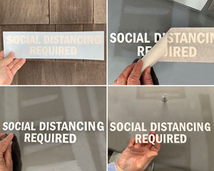 Make a mark where it is hard to ignore! Our Social Distancing Window Decals easily stick on the outside of your glass door or window and last for years.