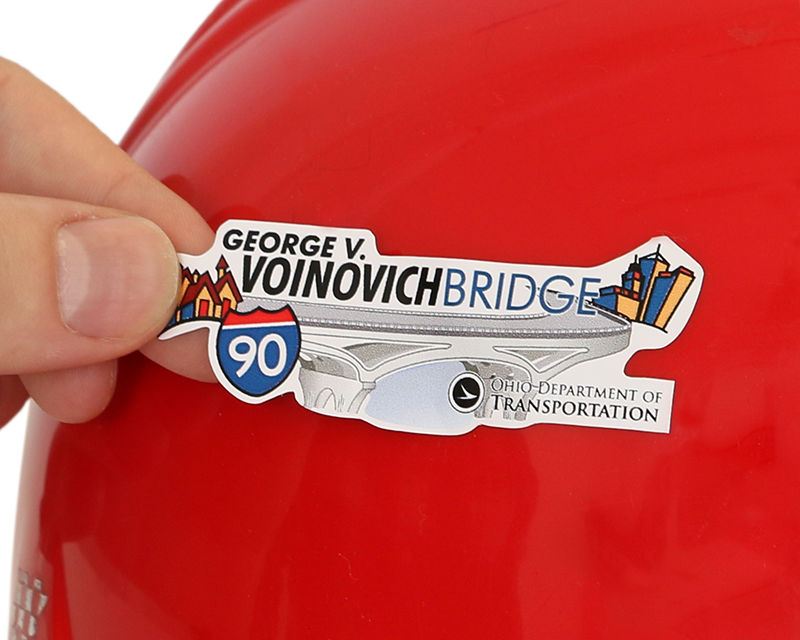 Order a hard hat sticker in any shape! You labels can have a distinctive shape. We will cut out the label to just your specfications. Trace the outside of your logo or create a shape that follows the contour of an animal or, even, your state.