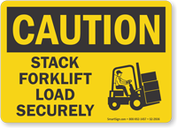 Unstable load can cause the forklift to overturn. Use this OSHA Caution Sign to spread awareness regarding secure load stacking. Graphic makes your message clearer.