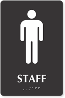 9in. x 6in. TactileTouchâ„¢ Bathroom Braille Sign: Staff With Male Pictogram (SE-5196)