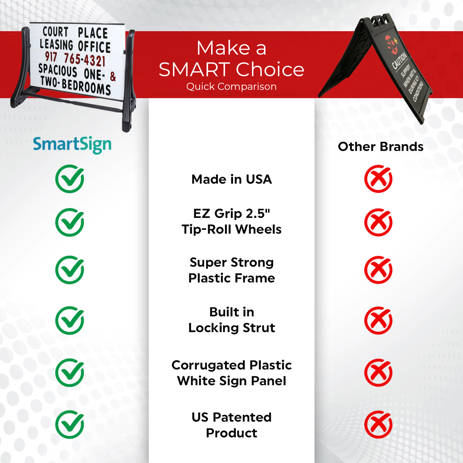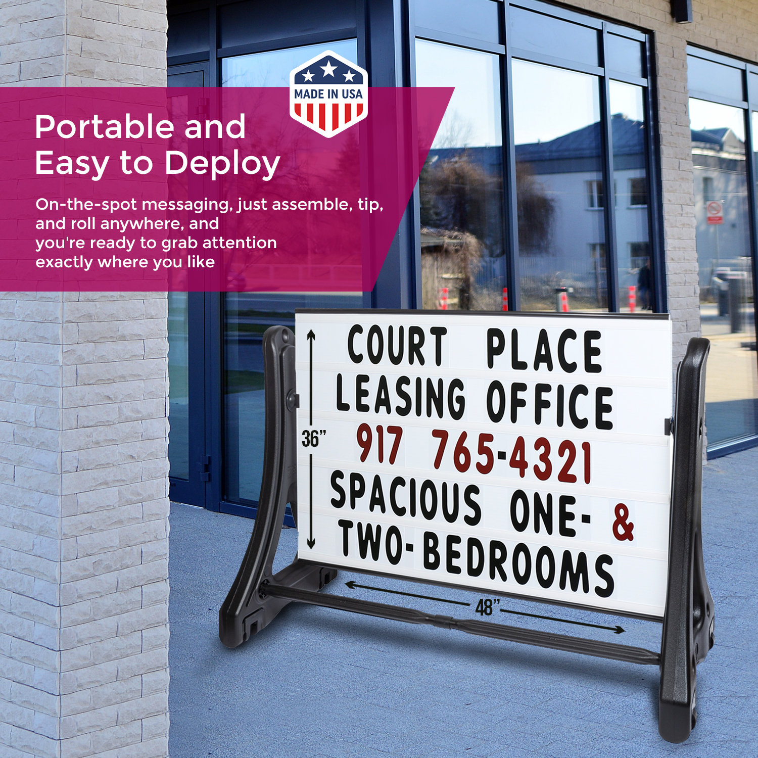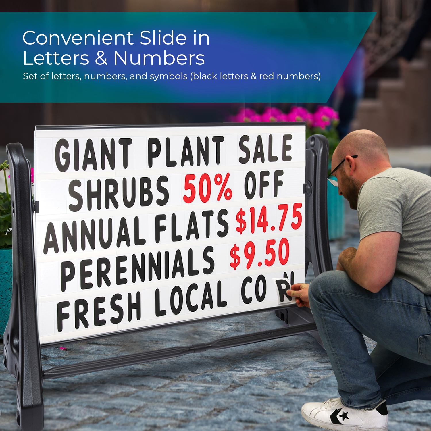 - Larger letters and numbers increase the visibility from farther distances—enhancing the legibilty from up to 150 ft away unlike traditional sidewalk signs that are limited to 25-50 ft.