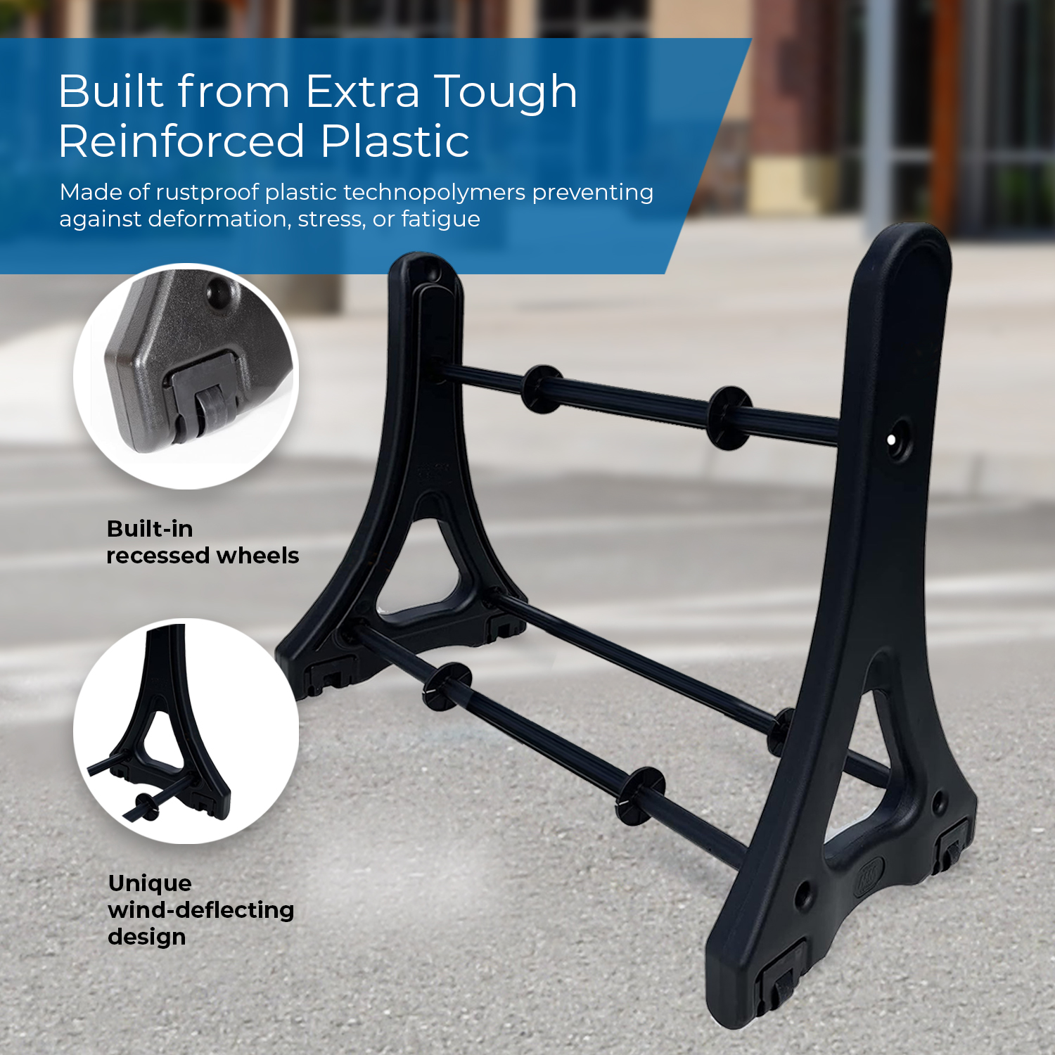 - Four anti-slip rubber feet (on the bottom of the uprights) keep the sign firmly in place when on the sidewalk.