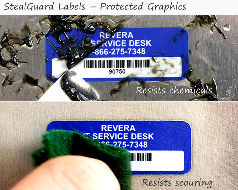 • • StealGuard™ shows a VOID pattern when you try to lift off the label. Laminated graphics.