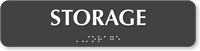 Permanent rooms in your building like the Storage are required to be identified with a TactileTouchâ„¢ Braille Sign like this.