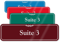 Make sure that your guests conveniently locate their allotted suites. Use this designer Suite Number ShowCase Wall sign to mark Suite 3. Choose from a range of elegant color options to suit your décor.