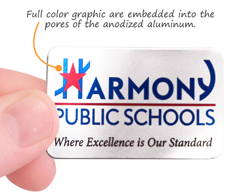Don't settle for just 1 color. Print a logo on your tags in full, vibrant color. Secure your assets and mark them as your own with a high-resolution logo. Your logo or graphics are embedded right into the anodized aluminum pores.