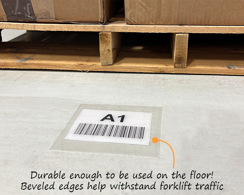 - ⢠Perfect for labels on warehouse shelves. Label protectors are even durable enough to be put on the floor! Clear label protectors can withstand abuse from forklifts and heavy foot traffic.