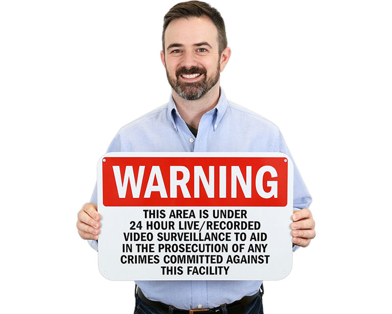 Smile! You're on camera. Our range of 24-hour surveillance signs let you protect your personal property from thieves, in vinyl or aluminum.