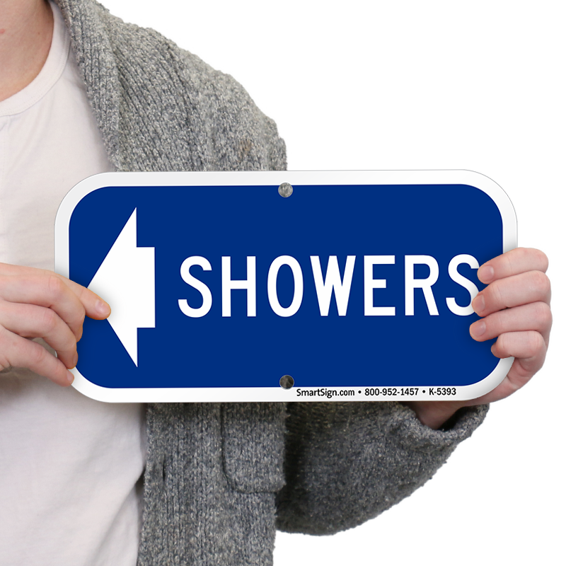 Help people stay clean. Use these clearly worded signs to indicate where showers are located.