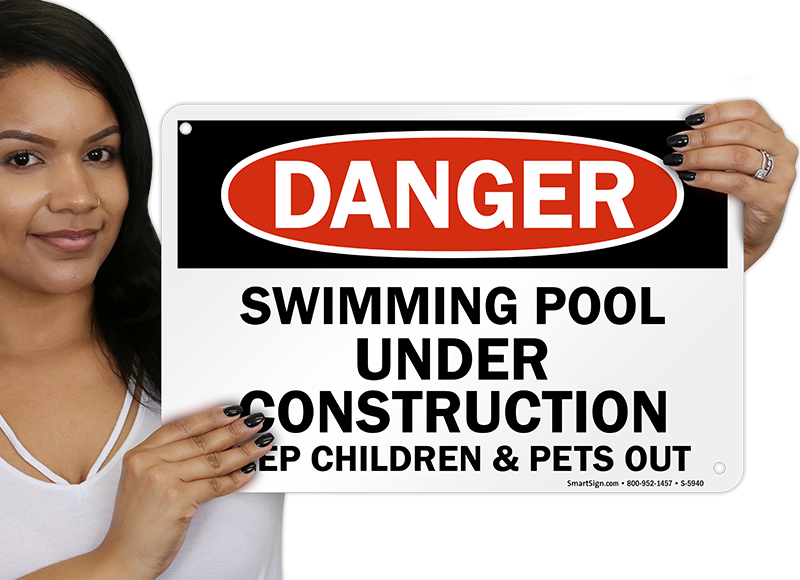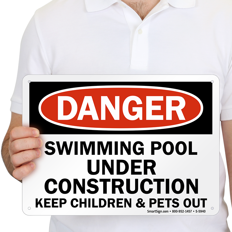 If your swimming pool is under construction, this OSHA Danger sign is the best way to inform everyone to keep children and pets out.