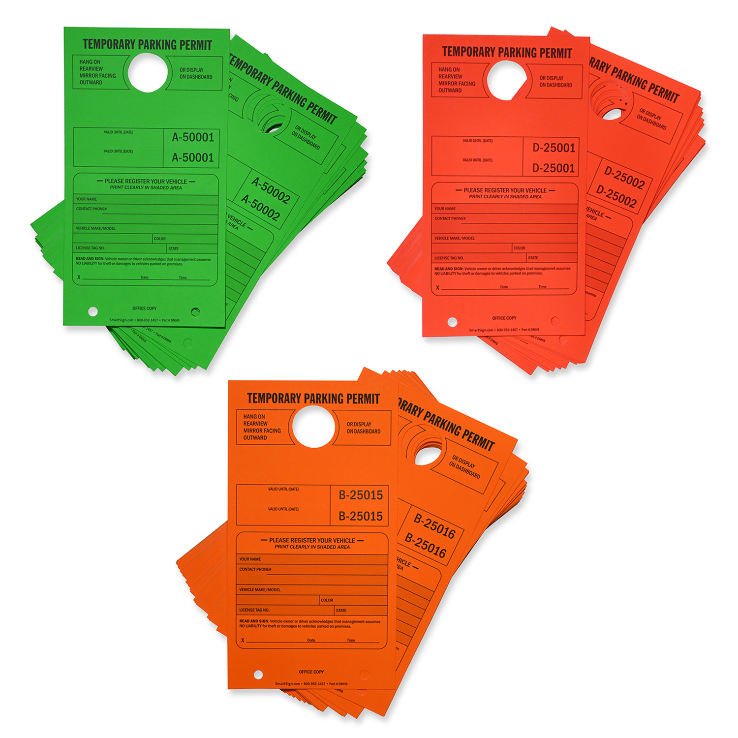 Size: 7.75" x 4.25" Material Type: Temporary Parking Permit Mirror Hang Tags - Fluorescent Cardstock Verified PurchaseOrder