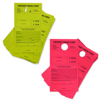 Material Type: Temporary Parking Permit Mirror Hang Tags - Fluorescent Cardstock