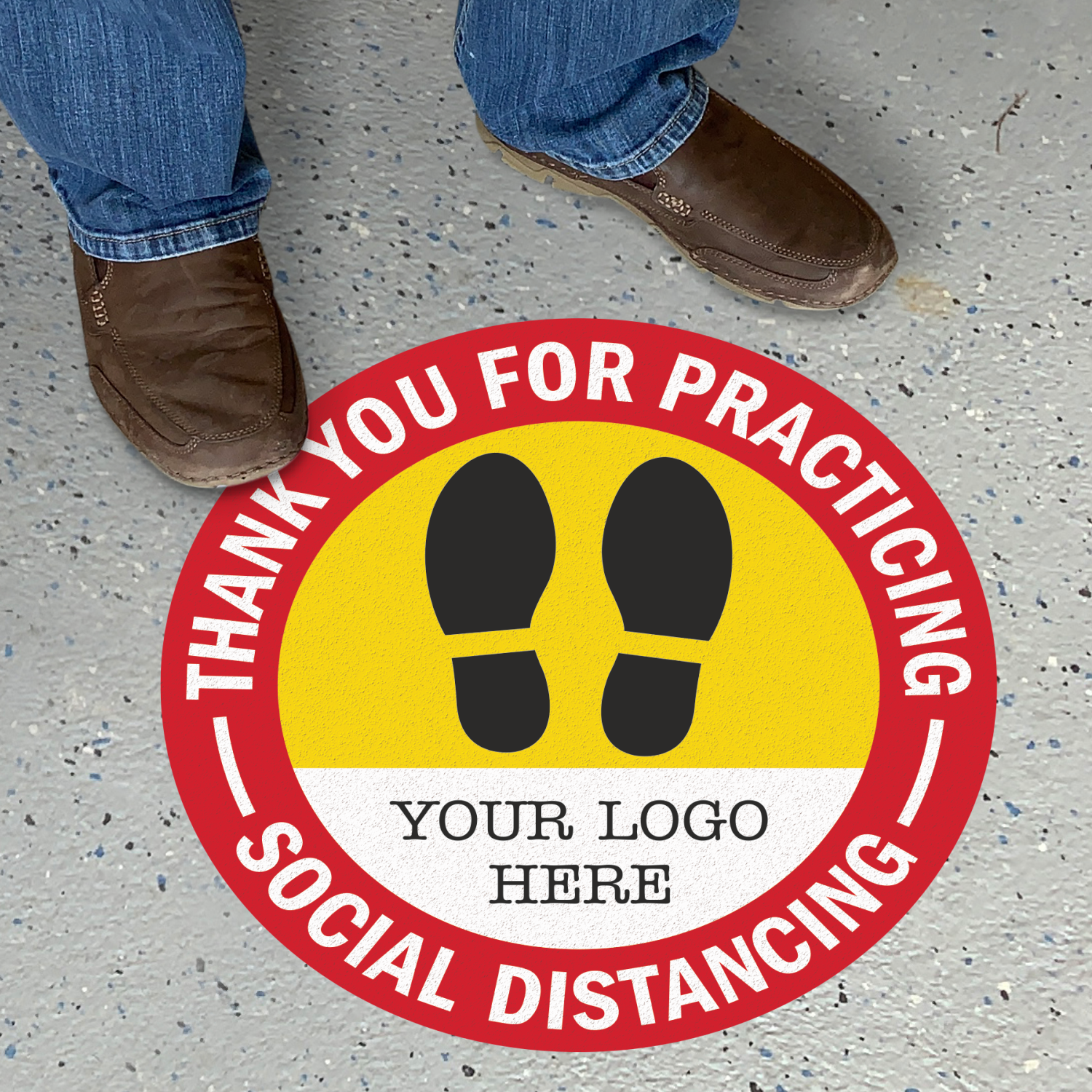 SlipSafe⢠Custom Floor Sign: Thank You For Practicing Social Distancing, Add Your Logo Here