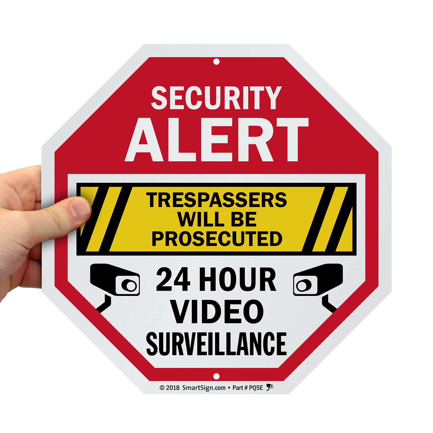 24 Hour Video Surveillance Sign: Security Alert - Trespassers Will Be Prosecuted K2-5314