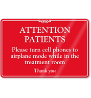 Use this Wall Sign when cell phone signals can interfere with your treatment and affect your patients' health.