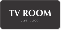 Mark the TV room so that visitors don't wander searching for it. Install this 4" x 8" sign with Braille which complies with ADA rules.