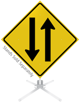 Whether your traffic emerges from a one way street or you are leaving a parking lot onto a two way street, these two way signs give your drivers a heads up. Signs remind drivers that they must exercise caution when entering a two-way road.