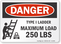 OSHA Danger Sign: Type I Ladder, Maximum Load 250 Lbs (S2-2093)