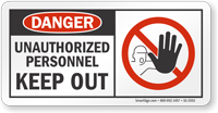 • • Choose from a variety of graphics on tough aluminum and laminated plastic Unauthorized Person Keep Out Signs to ensure safety in closed-off areas.