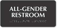 Yes, most of our designer unisex restroom signs have Grade 2 Braille and are ADA compliant. These signs are available in 44 faceplate colors, with the option to choose from gold, silver, and copper color backplates for many of these signs.