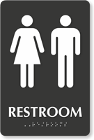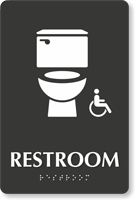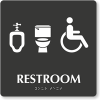 • • Our restroom signs comply with ADA signage requirements with raised letters, California Grade II Braille, symbols for enhanced accessibility.