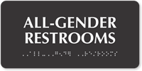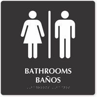 Yes. We offer unisex restroom signs in English, Spanish, and both languages. These signs are tactile and feature Grade 2 braille. Made using rigid, non-glare plastic, these signs are available in 15 color schemes and come with foam adhesive strips.