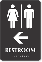 • • Our restroom signs comply with ADA signage requirements with raised letters, California Grade II Braille, symbols for enhanced accessibility.