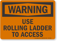 This OSHA Warning Sign ensures workers use rolling ladders to access high shelves or for collection of items. Sign can be installed conspicuously in narrow aisles and small spaces of warehouses, libraries, offices, hospitals, schools, etc..