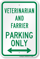 Reserved Parking Sign: Veterinarian And Farrier Parking Only (With Bi-directional Arrow) (K2-4656)